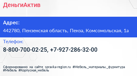 ДеньгиАктив по адресу 442780, Пензенская область, Пенза, Комсомольская, 1а в дальнейшем Организация, размещена в следующих категориях: