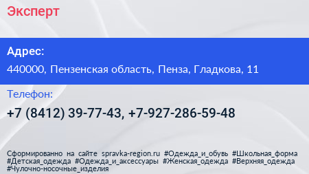 Эксперт+ по адресу 440000, Пензенская область, Пенза, Гладкова, 11 в дальнейшем Организация, размещена в следующих категориях: