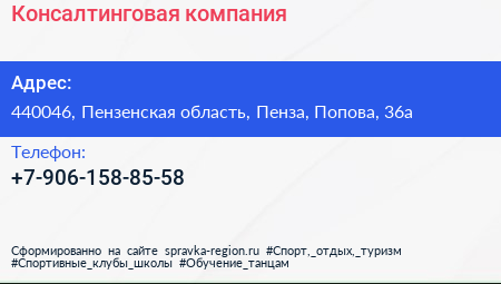 Консалтинговая компания по адресу 440046, Пензенская область, Пенза, Попова, 36а в дальнейшем Организация, размещена в следующих категориях: