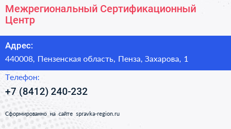Межрегиональный Сертификационный Центр по адресу 440008, Пензенская область, Пенза, Захарова, 1 в дальнейшем Организация, размещена в следующих категориях: