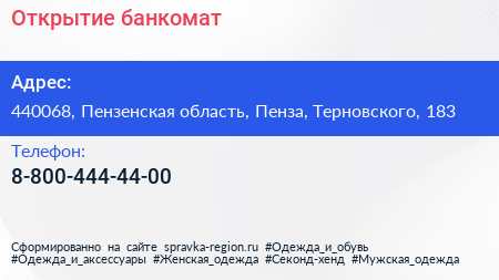 Открытие, банкомат по адресу 440068, Пензенская область, Пенза, Терновского, 183 в дальнейшем Организация, размещена в следующих категориях: