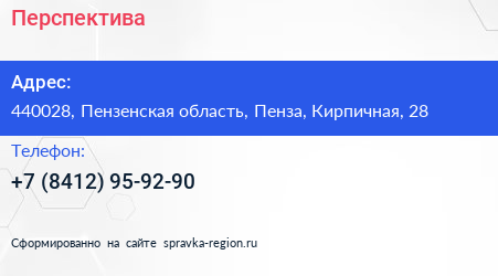 Перспектива по адресу 440028, Пензенская область, Пенза, Кирпичная, 28 в дальнейшем Организация, размещена в следующих категориях: