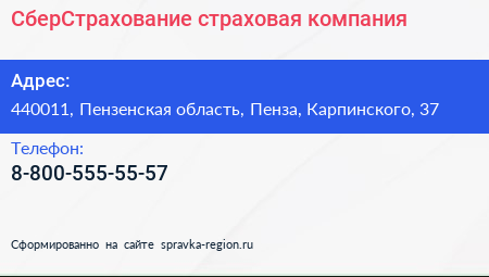 СберСтрахование, страховая компания по адресу 440011, Пензенская область, Пенза, Карпинского, 37 в дальнейшем Организация, размещена в следующих категориях: