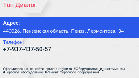 Топ Диалог по адресу 440026, Пензенская область, Пенза, Лермонтова, 34 в дальнейшем Организация, размещена в следующих категориях: