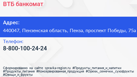 ВТБ, банкомат по адресу 440047, Пензенская область, Пенза, проспект Победы, 75а в дальнейшем Организация, размещена в следующих категориях: