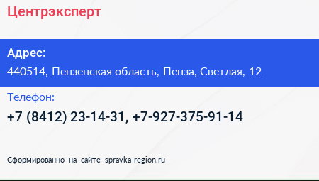 Центрэксперт по адресу 440514, Пензенская область, Пенза, Светлая, 12 в дальнейшем Организация, размещена в следующих категориях: