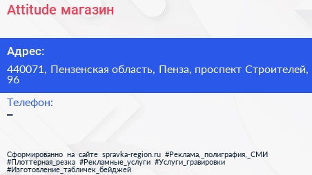 Attitude, магазин по адресу 440071, Пензенская область, Пенза, проспект Строителей, 96 в дальнейшем Организация, размещена в следующих категориях: