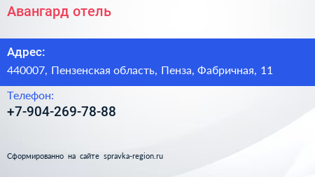 Авангард, отель по адресу 440007, Пензенская область, Пенза, Фабричная, 11 в дальнейшем Организация, размещена в следующих категориях: