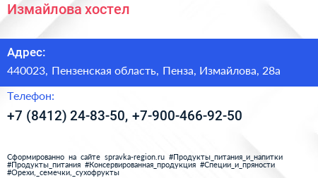 Измайлова, хостел по адресу 440023, Пензенская область, Пенза, Измайлова, 28а в дальнейшем Организация, размещена в следующих категориях: