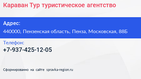 Караван-Тур, туристическое агентство по адресу 440000, Пензенская область, Пенза, Московская, 88Б в дальнейшем Организация, размещена в следующих категориях: