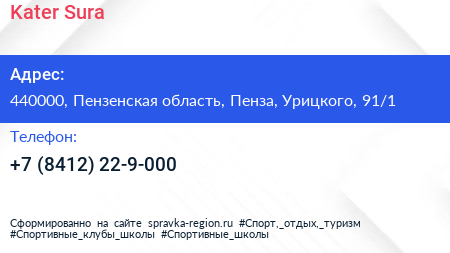 Kater Sura по адресу 440000, Пензенская область, Пенза, Урицкого, 91/1 в дальнейшем Организация, размещена в следующих категориях: