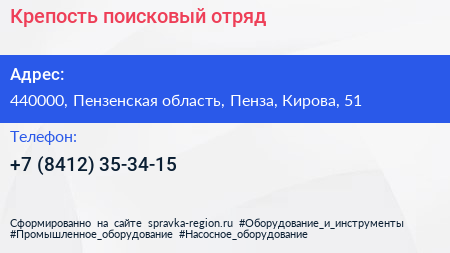 Крепость, поисковый отряд по адресу 440000, Пензенская область, Пенза, Кирова, 51 в дальнейшем Организация, размещена в следующих категориях: