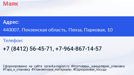 Маяк по адресу 440007, Пензенская область, Пенза, Парковая, 10 в дальнейшем Организация, размещена в следующих категориях: