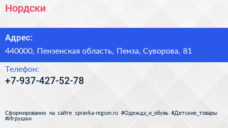Нордски по адресу 440000, Пензенская область, Пенза, Суворова, 81 в дальнейшем Организация, размещена в следующих категориях:
