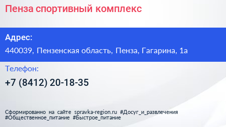 Пенза, спортивный комплекс по адресу 440039, Пензенская область, Пенза, Гагарина, 1а в дальнейшем Организация, размещена в следующих категориях: