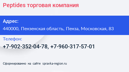 Peptides, торговая компания по адресу 440000, Пензенская область, Пенза, Московская, 83 в дальнейшем Организация, размещена в следующих категориях: