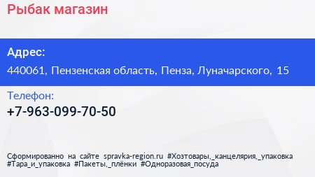 Рыбак, магазин по адресу 440061, Пензенская область, Пенза, Луначарского, 15 в дальнейшем Организация, размещена в следующих категориях:
