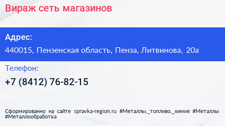 Вираж, сеть магазинов по адресу 440015, Пензенская область, Пенза, Литвинова, 20а в дальнейшем Организация, размещена в следующих категориях:
