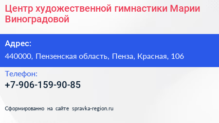 Центр художественной гимнастики Марии Виноградовой по адресу 440000, Пензенская область, Пенза, Красная, 106 в дальнейшем Организация, размещена в следующих категориях: