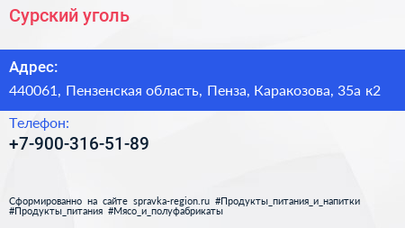 Сурский уголь по адресу 440061, Пензенская область, Пенза, Каракозова, 35а к2 в дальнейшем Организация, размещена в следующих категориях: