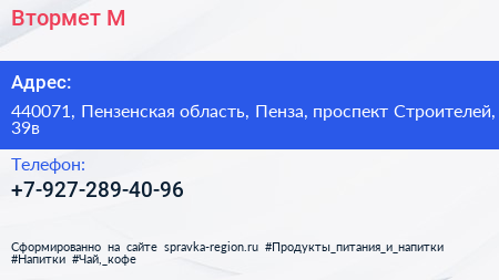 Втормет М по адресу 440071, Пензенская область, Пенза, проспект Строителей, 39в в дальнейшем Организация, размещена в следующих категориях: