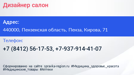 Дизайнер, салон по адресу 440000, Пензенская область, Пенза, Кирова, 71 в дальнейшем Организация, размещена в следующих категориях:
