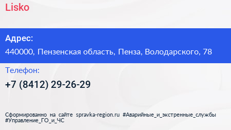 Lisko по адресу 440000, Пензенская область, Пенза, Володарского, 78 в дальнейшем Организация, размещена в следующих категориях: