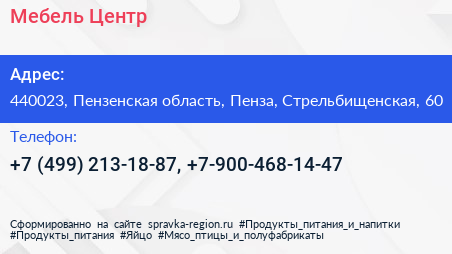 Мебель-Центр по адресу 440023, Пензенская область, Пенза, Стрельбищенская, 60 в дальнейшем Организация, размещена в следующих категориях: