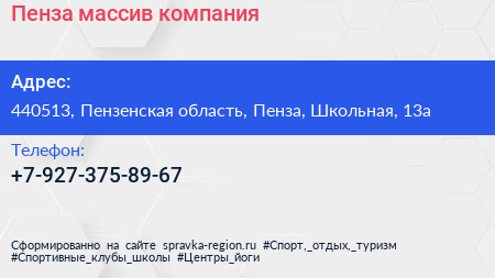 Пенза массив, компания по адресу 440513, Пензенская область, Пенза, Школьная, 13а в дальнейшем Организация, размещена в следующих категориях: