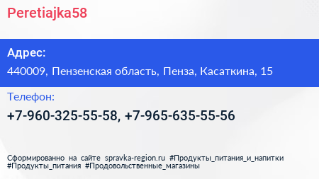 Peretiajka58 по адресу 440009, Пензенская область, Пенза, Касаткина, 15 в дальнейшем Организация, размещена в следующих категориях: