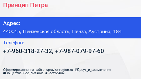Принцип Петра по адресу 440015, Пензенская область, Пенза, Аустрина, 184 в дальнейшем Организация, размещена в следующих категориях:
