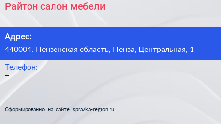 Райтон, салон мебели по адресу 440004, Пензенская область, Пенза, Центральная, 1 в дальнейшем Организация, размещена в следующих категориях: