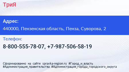 ТриЯ по адресу 440000, Пензенская область, Пенза, Суворова, 2 в дальнейшем Организация, размещена в следующих категориях: