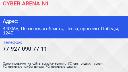 CYBER ARENA N1 по адресу 440066, Пензенская область, Пенза, проспект Победы, 124Б в дальнейшем Организация, размещена в следующих категориях:
