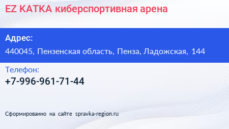 EZ KATKA, киберспортивная арена по адресу 440045, Пензенская область, Пенза, Ладожская, 144 в дальнейшем Организация, размещена в следующих категориях: