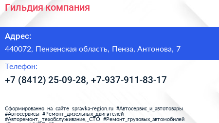 Для связи с организацией воспользуйтесь номером телефона: +7 (8412) 25-09-28, +7-937-911-83-17. Ежедневно с 09:00 до 13:00, вы можете обратиться в эту организацию.