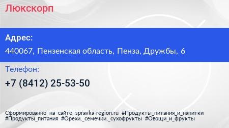 Люкскорп по адресу 440067, Пензенская область, Пенза, Дружбы, 6 в дальнейшем Организация, размещена в следующих категориях: