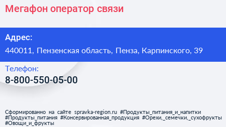 Мегафон, оператор связи по адресу 440011, Пензенская область, Пенза, Карпинского, 39 в дальнейшем Организация, размещена в следующих категориях: