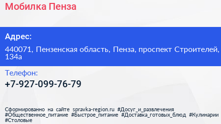 Мобилка Пенза по адресу 440071, Пензенская область, Пенза, проспект Строителей, 134а в дальнейшем Организация, размещена в следующих категориях: