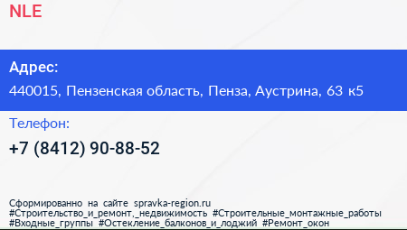 NLE по адресу 440015, Пензенская область, Пенза, Аустрина, 63 к5 в дальнейшем Организация, размещена в следующих категориях: