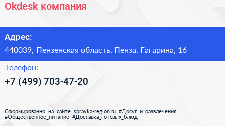 Okdesk, компания по адресу 440039, Пензенская область, Пенза, Гагарина, 16 в дальнейшем Организация, размещена в следующих категориях: