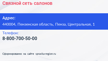 Связной, сеть салонов по адресу 440004, Пензенская область, Пенза, Центральная, 1 в дальнейшем Организация, размещена в следующих категориях: