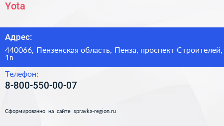 Yota по адресу 440066, Пензенская область, Пенза, проспект Строителей, 1в в дальнейшем Организация, размещена в следующих категориях: