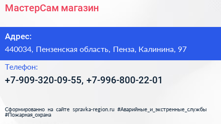 МастерСам, магазин по адресу 440034, Пензенская область, Пенза, Калинина, 97 в дальнейшем Организация, размещена в следующих категориях: