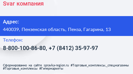 Svar, компания по адресу 440039, Пензенская область, Пенза, Гагарина, 13 в дальнейшем Организация, размещена в следующих категориях: