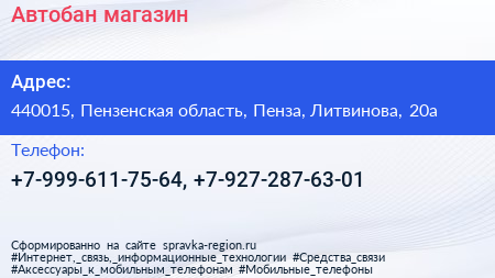 Автобан, магазин по адресу 440015, Пензенская область, Пенза, Литвинова, 20а в дальнейшем Организация, размещена в следующих категориях: