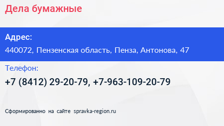 Дела бумажные по адресу 440072, Пензенская область, Пенза, Антонова, 47 в дальнейшем Организация, размещена в следующих категориях: