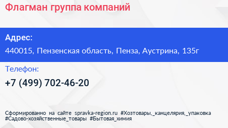 Флагман, группа компаний по адресу 440015, Пензенская область, Пенза, Аустрина, 135г в дальнейшем Организация, размещена в следующих категориях: