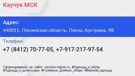 Каучук МСК по адресу 440015, Пензенская область, Пенза, Аустрина, 98 в дальнейшем Организация, размещена в следующих категориях: