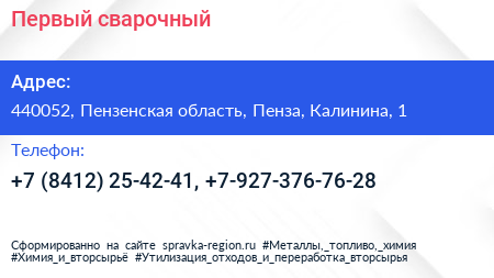 Первый сварочный по адресу 440052, Пензенская область, Пенза, Калинина, 1 в дальнейшем Организация, размещена в следующих категориях: